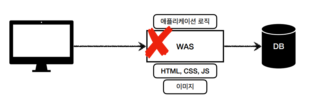 WAS는 정적 리소스, 애플리케이션 로직 모두 제공 가능하므로 WAS, DB 만으로도 시스템 구성이 가능하다.