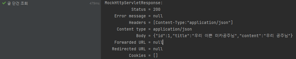 해당하는 id 를 가진 글을 조회하고 그 정보를 확인하는 테스트이다.