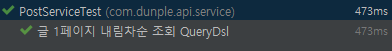 @DisplayName("글 1페이지 내림차순 조회 QueryDsl")