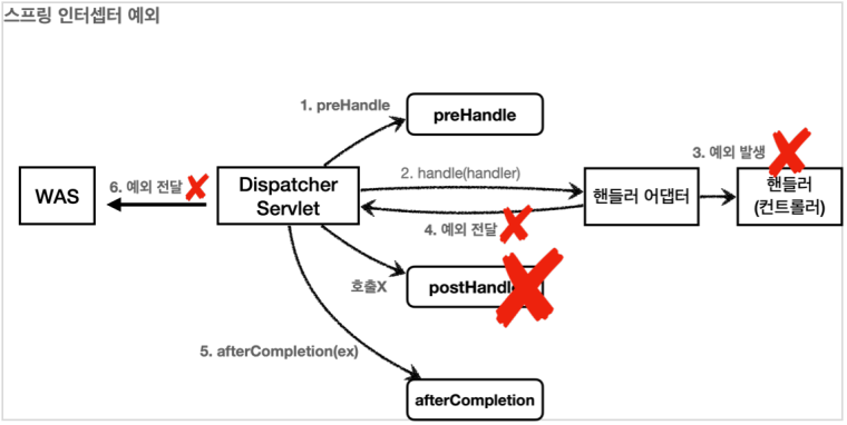 위처럼 afterCompletion은 예외가 발생해도 호출된다.