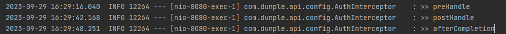 애플리케이션을 실행하거나 Mock 테스트를 수행하고 로그를 확인하면 아래처럼 동작하는걸 확인할 수 있다.
