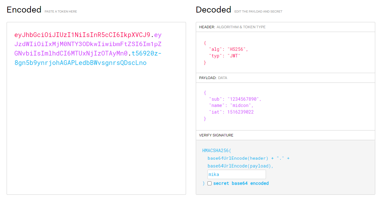 네트워크에 부하를 줄 수 있다. - Payload 인코딩: Payload 자체는 암호화 된 것이 아니라 BASE64Url로 인코딩 된 것이다.