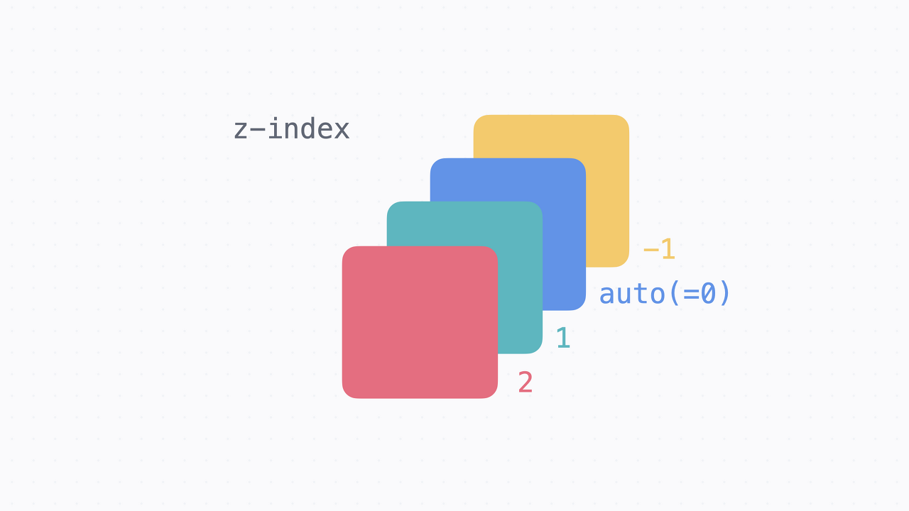 값이 높을수록 화면에서 앞쪽에 보이며, 값이 같으면 코드에서 아래 줄에 있는 요소가 앞쪽에 보인다.