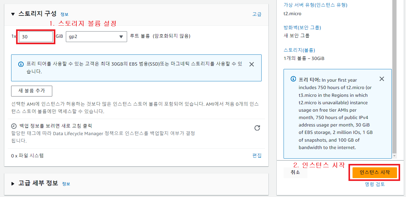프리티어는 최대 30GB까지 지원하므로 30GB로 설정한다.