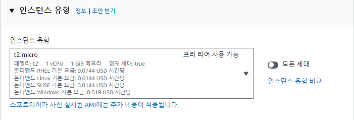 프리티어를 이용하기 때문에 사실 t2.micro 외엔 대안이 없긴 하다.