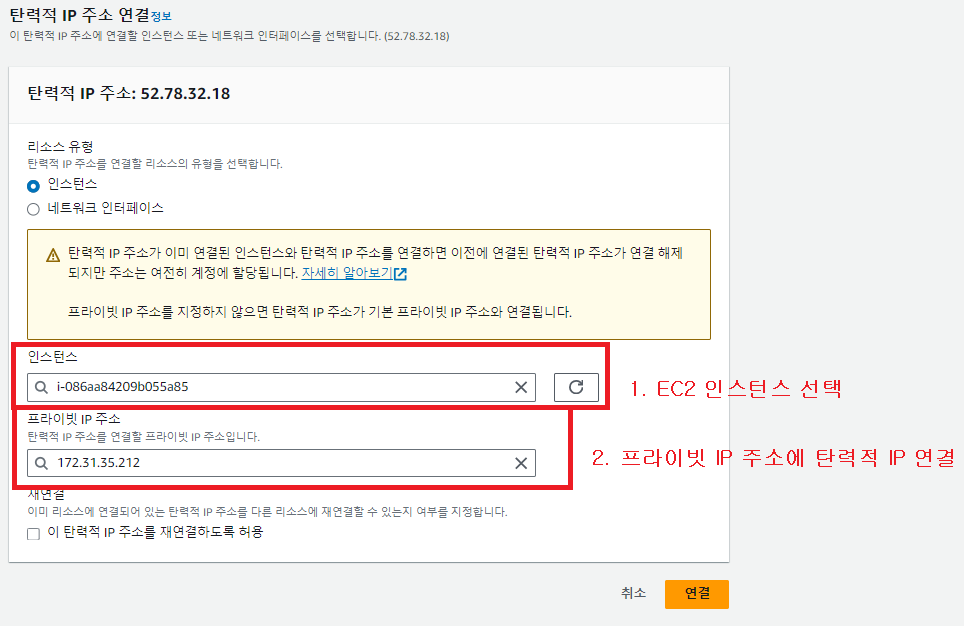 1-3. 탄력적 IP 주소 연결