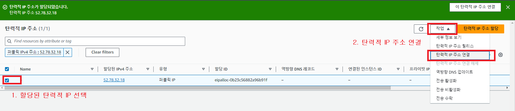 1. 탄력적 IP 할당