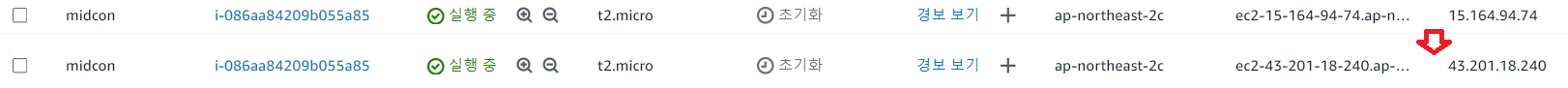 만약 오류가 생겨서 인스턴스를 종료하고 다시 실행해야 한다면 그때마다 IP가 변경되기 때문에 관련 설정을 다시 해줘야한다.