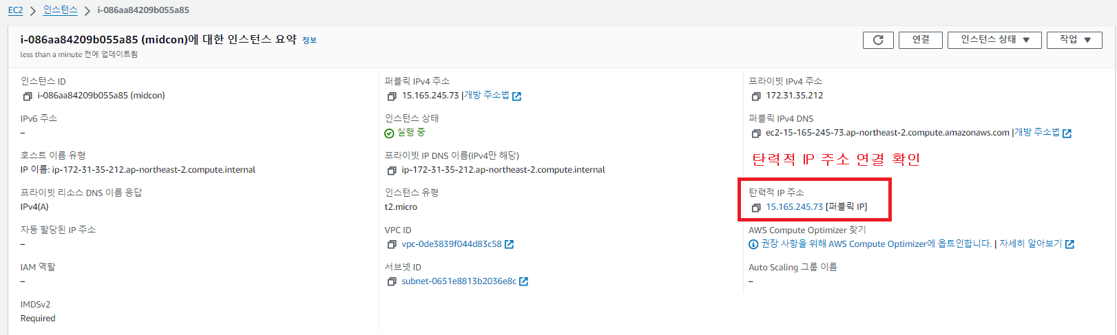 2. 탄력적 IP 연결 확인