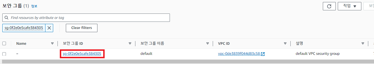 여기서 default 보안 그룹을 눌러서 이동한다.