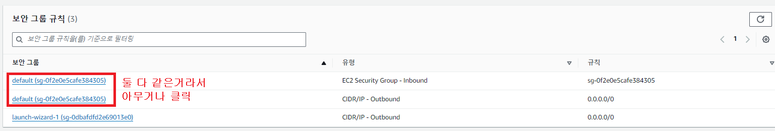 default 보안 그룹을 클릭해서 이동하면 아래처럼 확인할 수 있다.