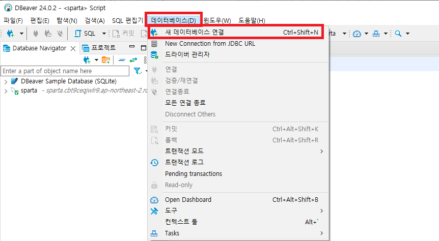 DBeaver를 사용하면 아래와 같은 창을 확인할 수 있다.