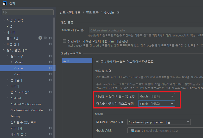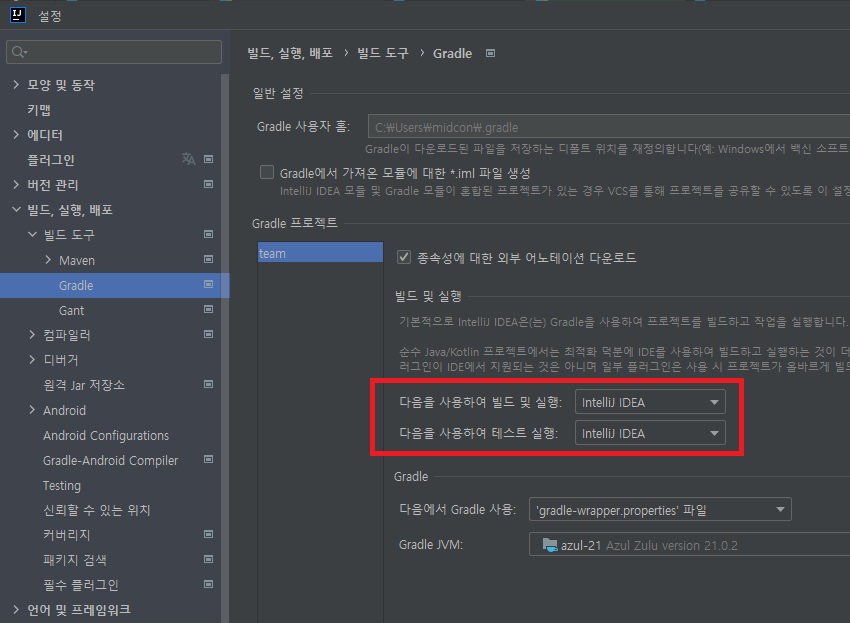 문제는 본인이 주로 쓰던 빌드 방식인 인텔리제이 IDEA 빌드 방식에 있었다.