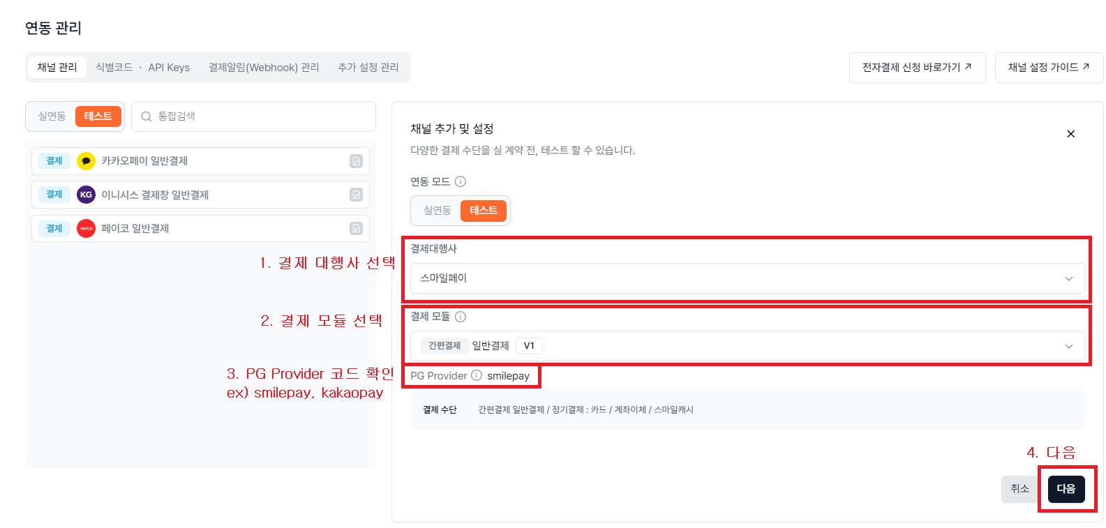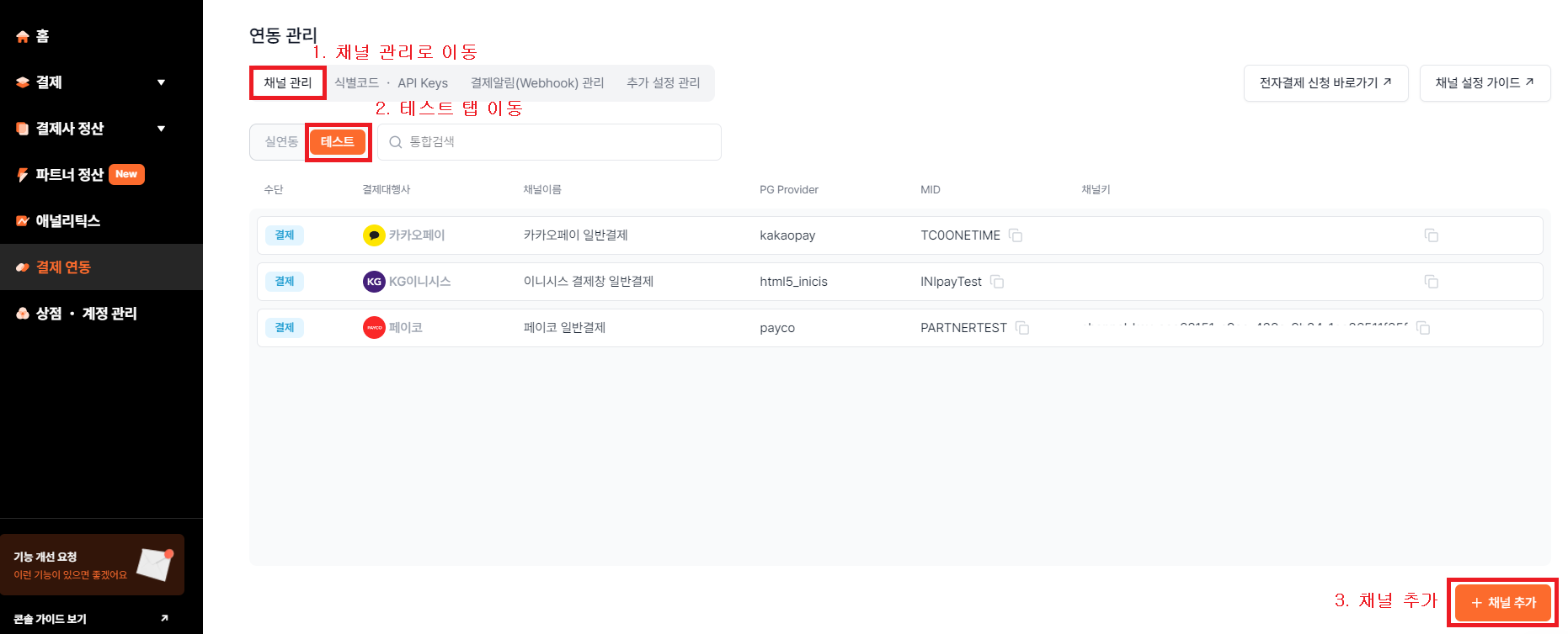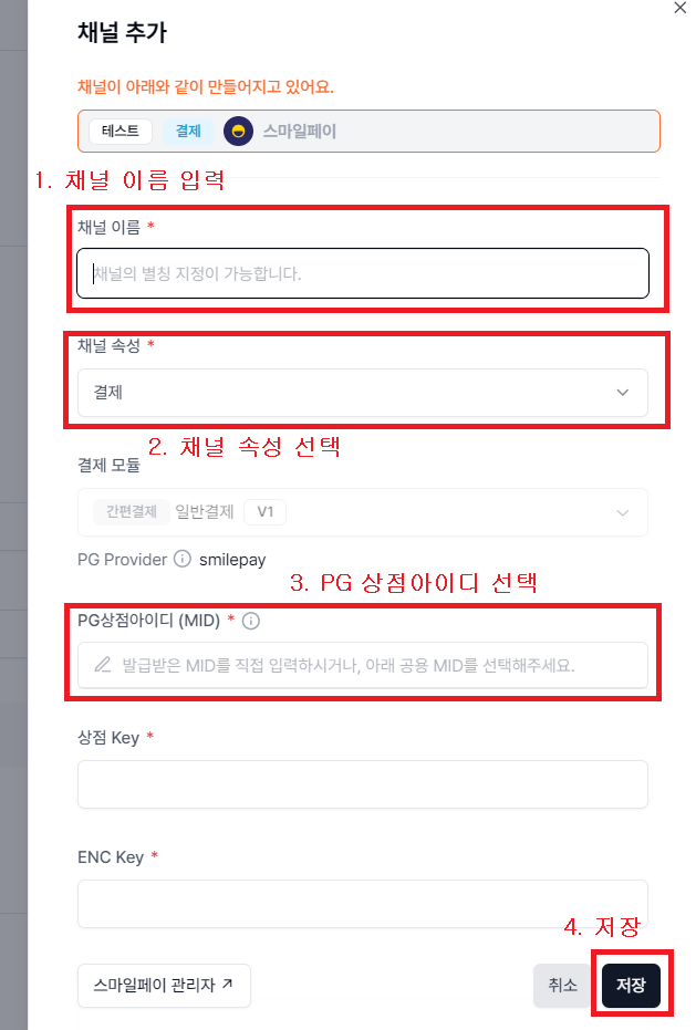 2. 결제용 채널 추가