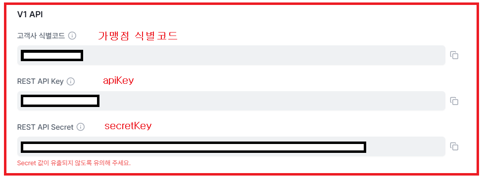 위에서 사전준비 할 때 봤던 고객사 식별코드(가맹점 식별코드)를 여기서 사용한다.