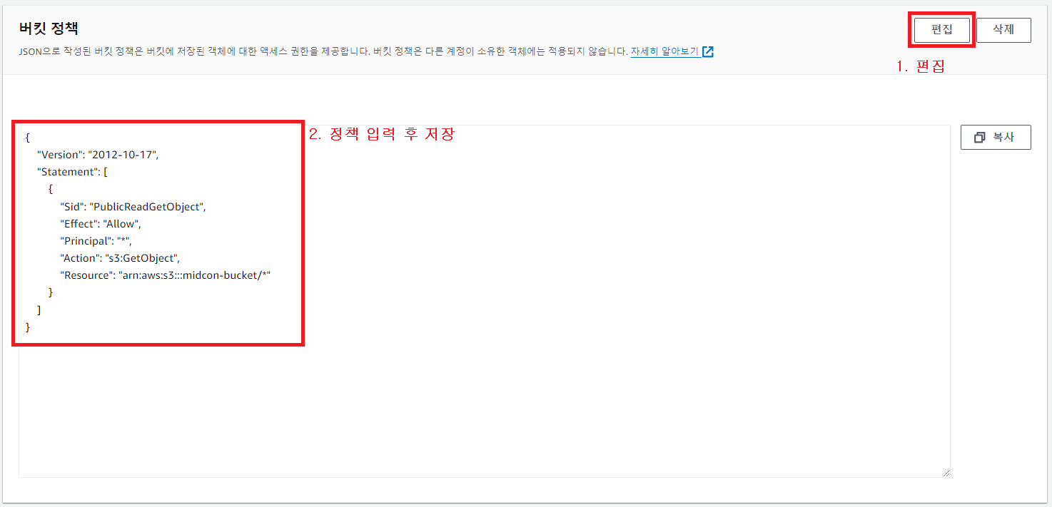 3-2. 버킷 정책 수정