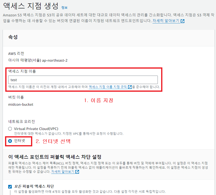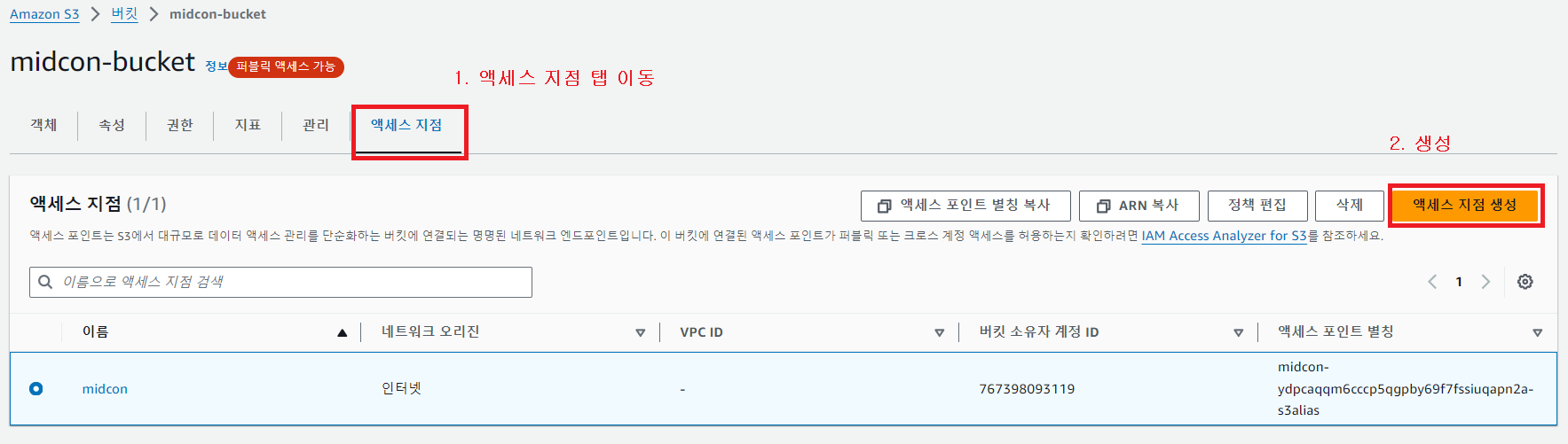 4-1. 버킷 선택 후 액세스 지점 탭 이동