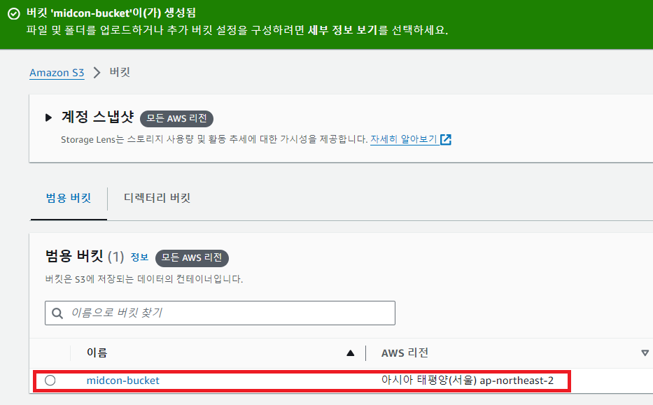 2-3. 버킷 생성 확인