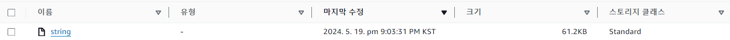 요청 값에 입력한 파일명이 string 이므로 S3에 string이라는 이름으로 저장될 것이다.