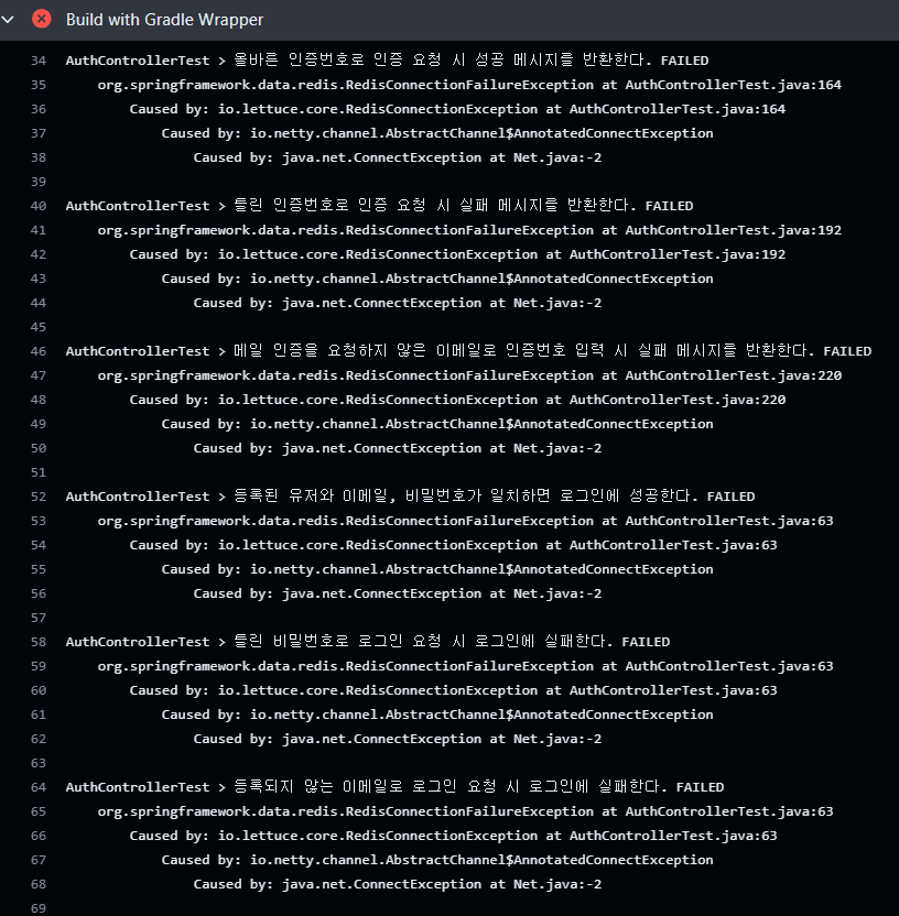 org.springframework.data.redis.RedisConnectionFailureException at AuthControllerTest.java:164
