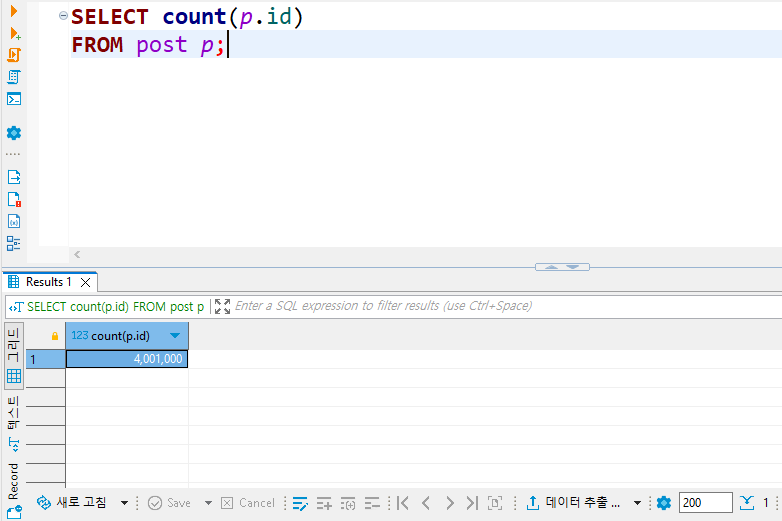 아래처럼 DB에 400만 건의 데이터를 넣어뒀다.