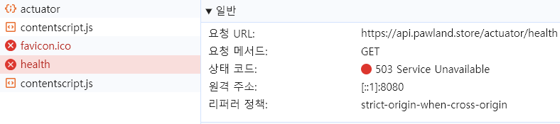 네트워크 탭을 확인해보면 아래처럼 상태코드가 503 으로 오는걸 확인할 수 있었다.
