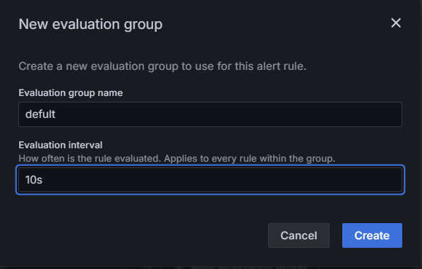 Evaluation group에서 해당 그룹은 얼마 간격으로 서비스 상태를 다시 확인하는지 설정할 수 있다.