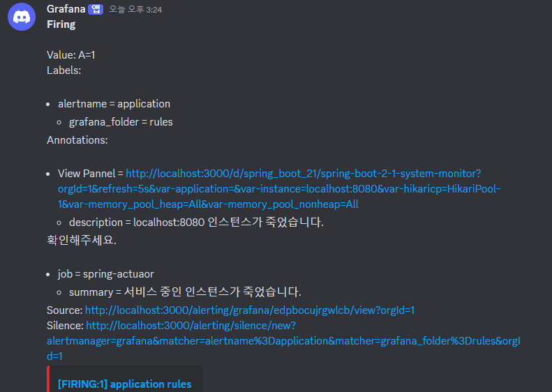 아래처럼 디스코드로 설정한 경고 메시지가 잘 전달됨을 확인할 수 있다.