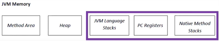 - 스택, PC Register, Native Method Stack 영역