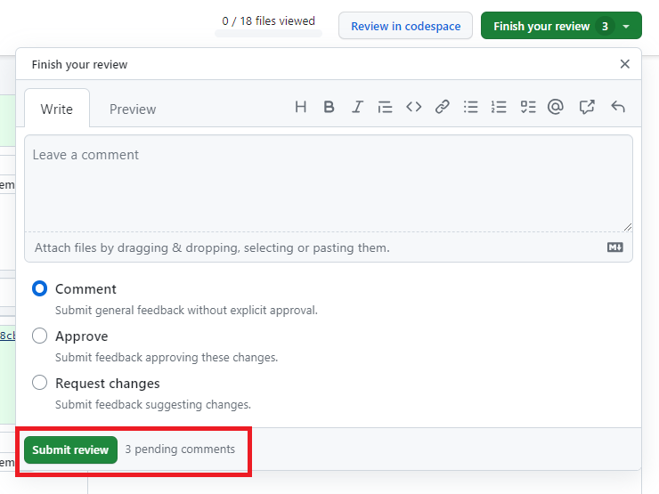 Comment, Approve, Request changes 기능이 있으니 잘 활용하자.