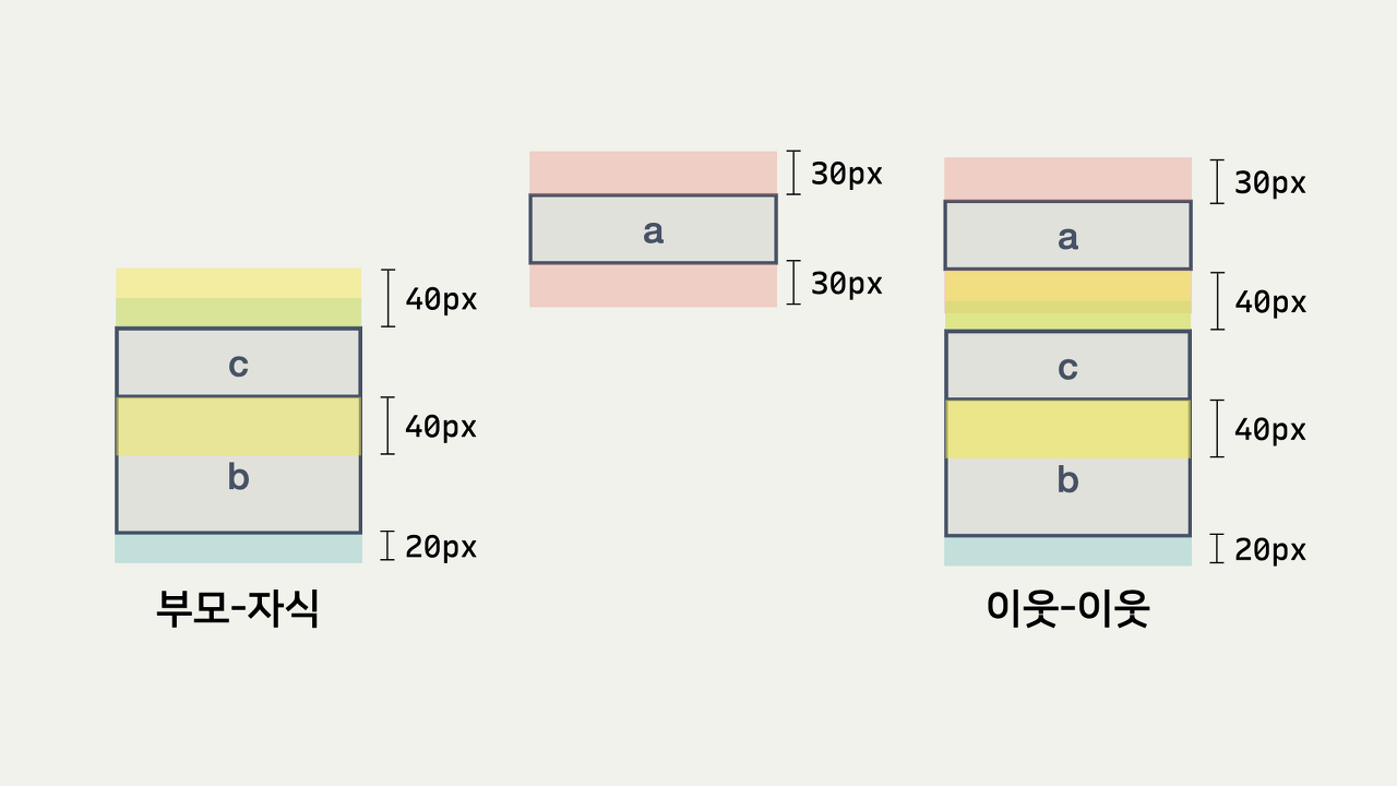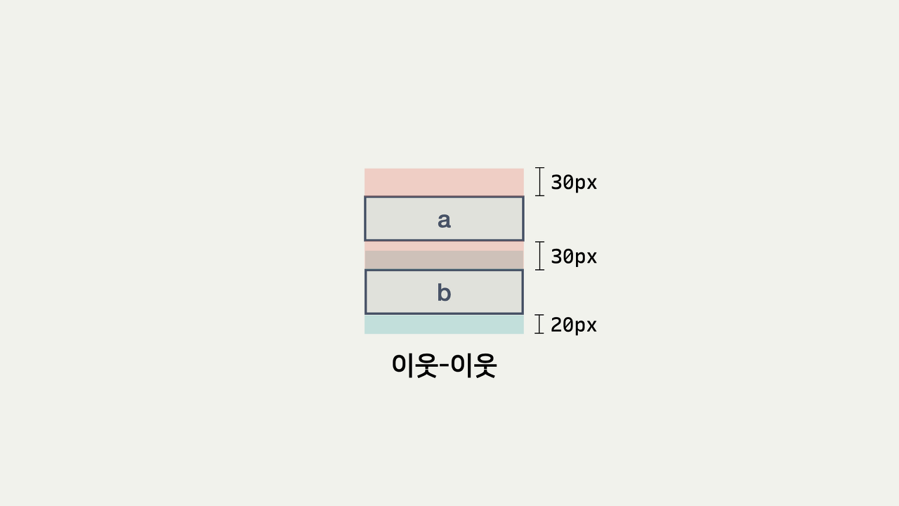 이 마진 값을 이웃한 #a와 겹치면, #a와 #b 사이의 마진은 40px이 된다.